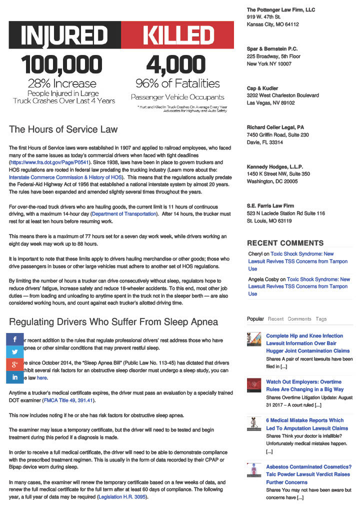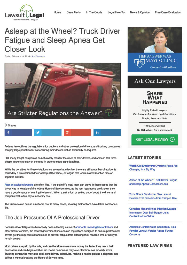 Read: Asleep at the Wheel? Truck Driver Fatigue and Sleep Apnea Get Closer Look at Lawsuit Legal